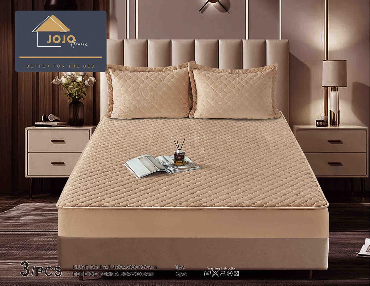 O husă cu elastic pe tot conturul care se potrivește perfect pe saltea și include 2 fețe de pernă coordonate.- Dimensiuni husă: Se adaptează pe saltele de 180 cm x 200 cm, înălțime până la 30 cm