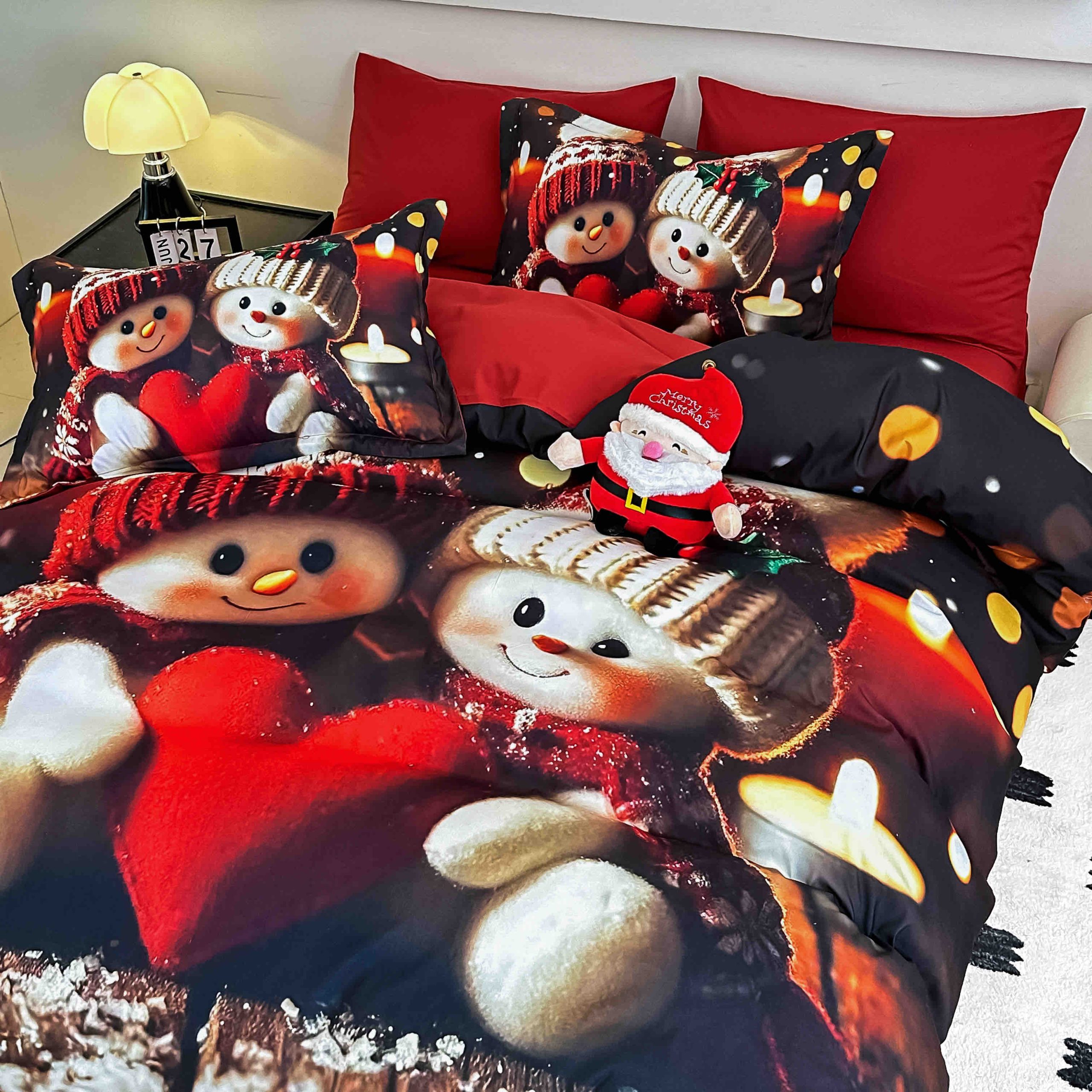 Lenjerie de Crăciun Pat Dublu cu Elastic – Imprimeu 5D 6 Piese