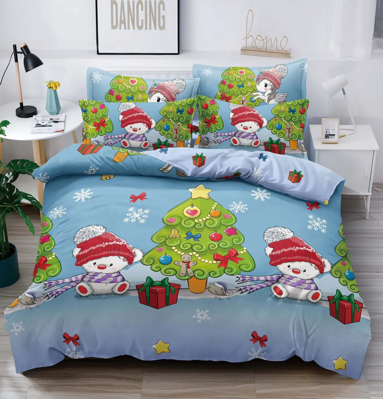 Lenjeria de Crăciun Pat Dublu - Bumbac Finet 6 Piese include tot ce ai nevoie pentru a transforma dormitorul într-un colț de festivitate.- Dimensiuni exacte: Cearceaf de pat 240x250 cm, cearceaf pilotă 200x230 cm, 2 fețe de pernă 55x75 cm și 2 fețe de pernă 70x70 cm.