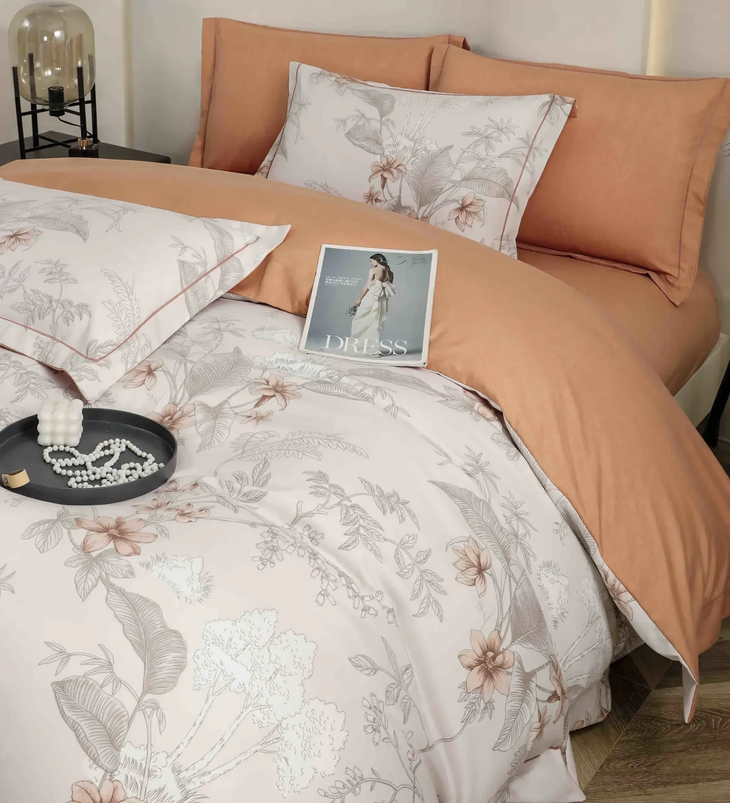 • Design elegant: Nuanta sofisticată de somon închis cu alb aduce un aer cald și primitor dormitorului.