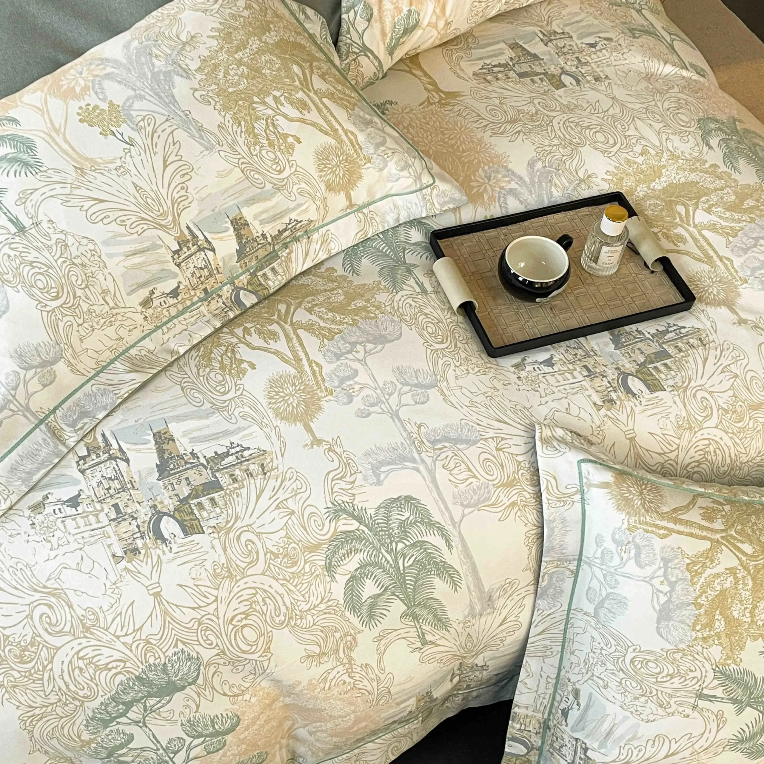 - Design elegant: Culori rafinate de verde, bej și alb, perfecte pentru orice decor.
