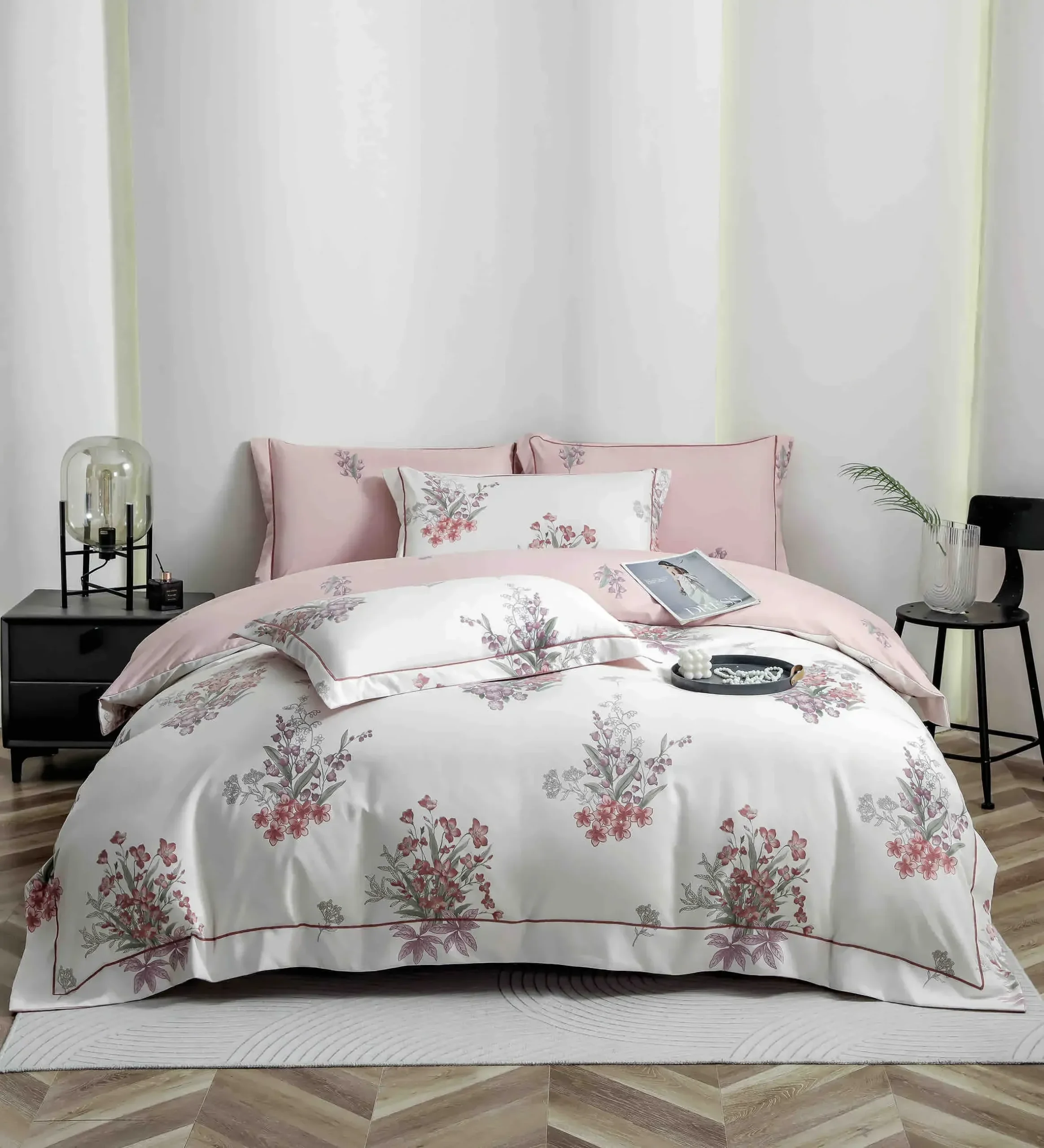 Lenjerie de pat Finet 6 piese cu elastic Imprimeu Digital 5D, Menta Roz