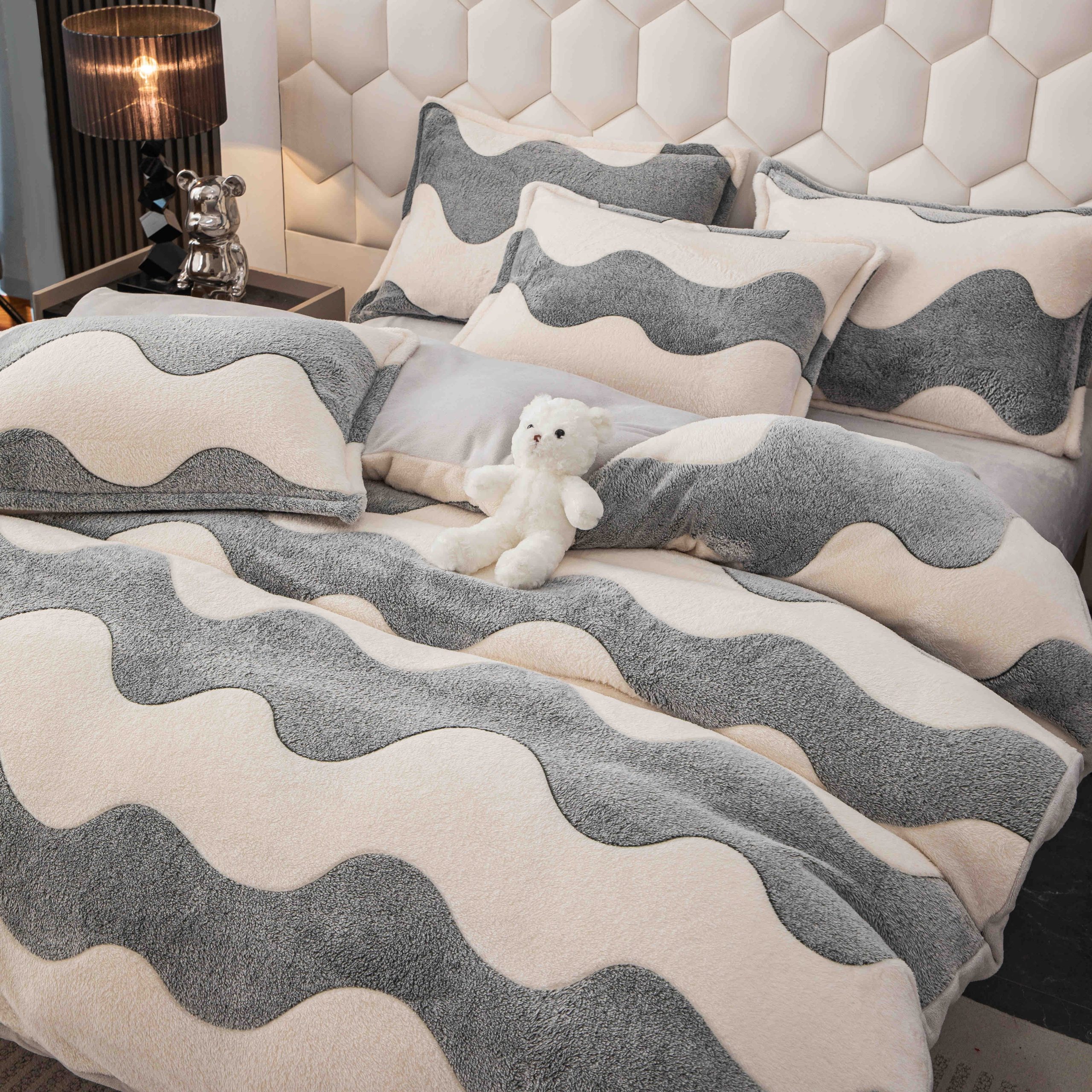 • Textură catifelată extra-pufoasă: Suprafața moale și densă îți îmbrățișează pielea și reține căldura eficient.